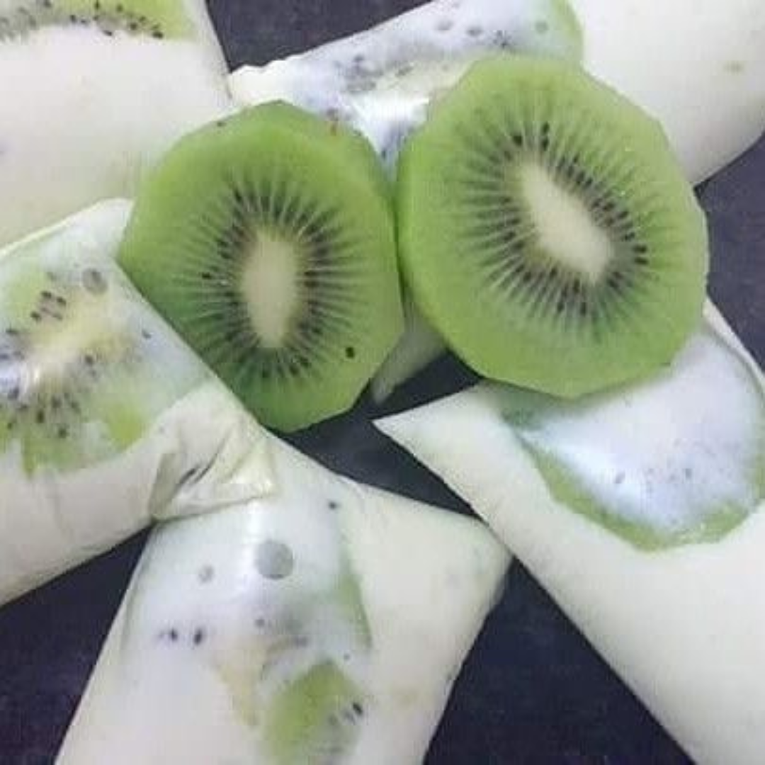 O geladinho de kiwi com ninho é um sabor incomum, mas que vende bastante no verão, é uma verdadeira delícia.